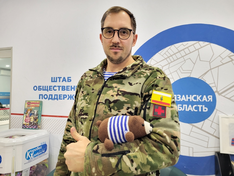 – Это транспортировка раненых бойцов, которых привозят с передовой. Их необходимо перевозить по зданию госпиталя, в операционную, по палатам. Это мужская работа. Порой приходится работать по ночам. Бойцы нуждаются в общении, что для них тоже очень важно. Я всегда вожу с собой подарки. В прошлый раз привёз бойцу именную икону, написанную рязанскими иконописцами. Теперь он её везде с собой носит. В этот раз взял интересные книги о наших великих рязанцах, трехтомник К.Э. Циолковского с его трудами, в которых он говорил, что в жизни нужно сделать что-то полезное для общества. Везу с собой и талисман – десантного мишку, который со мной вернётся в Рязань, – рассказывает Николай Медведков.