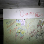 Сейчас убежище заброшено. Кругом сырость, света нет, а от лишнего внимания людей здесь прячется лишь местная дворняга, у которой нет части передней лапы. О том, что в бомбоубежище жили люди, говорят лишь оставшиеся на стенах рисунки и надписи: «Дети Донбасса хотят мира», «С нами Бог».