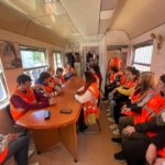 Во время рейса школьникам напомнили правила поведения на железнодорожных переходах, линиях и переездах. Находясь в поезде, они смогли убедиться, что быстро остановить поезд невозможно.