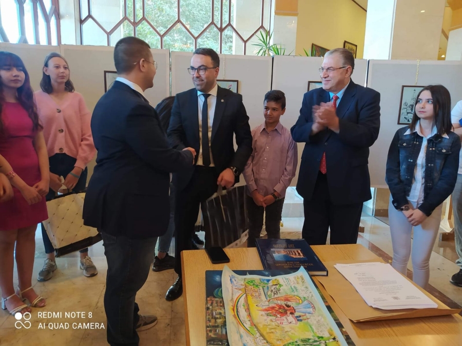 Министр просвещения Сирийской Арабской Республики выразил искреннюю признательность правительству Рязанской области за проявленное внимание к конкурсу рисунков сирийских школьников и организацию выставки «Россия глазами сирийских детей». Он подчеркнул важность и значимость таких проектов для укрепления дружбы между нашими странами, а также поблагодарил инициатора и организатора выставки – члена Союза художников России, члена Общественной палаты Рязанской области, профессора Современного технического университета Владимира Янаки и вручил ему благодарственное письмо от министерства просвещения Сирийской Арабской Республики за большой личный вклад в дело международного сотрудничества Сирии и России.
