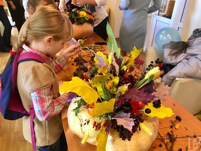 Интересно и увлекательно была выстроена развлекательная программа: анимационные игры, конкурсы, шоу мыльных пузырей. Эмоционально отреагировала детвора на выступление клуба артистического фехтования «Вольные бойцы». С большим увлечением дети и взрослые приняли участие в мастер-классе по созданию красивых осенних композиций из тыквы, фруктов, осенних цветов, которые они с благодарностью подарили Н.Н. Гришиной.