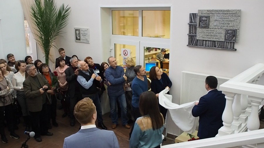 Торжественное открытие мемориальной доски в честь лауреатов Нобелевской премии Ивана Петровича Павлова и Александра Исаевича Солженицына состоялось в здании областной библиотеки имени Горького.