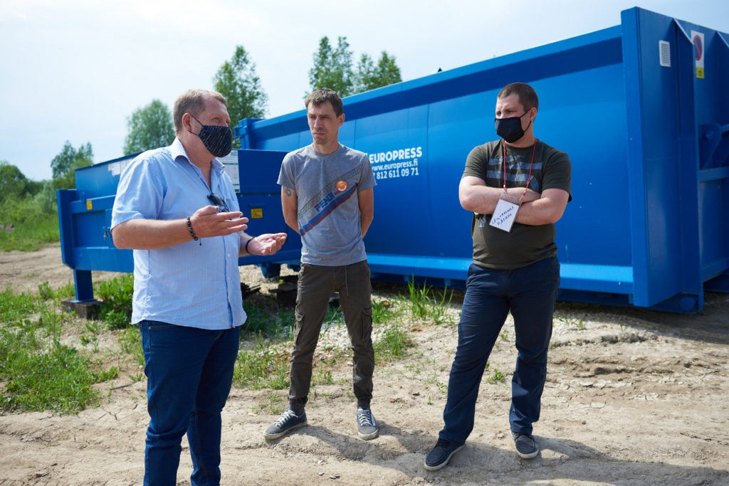 Участники экскурсии побывали на инженерно-технической базе компании «Эко-Пронск». Она расположена в промышленной зоне в 5 километрах от города, рядом с производственными предприятиями. Именно здесь находится уникальный аппарат – пресс-компактор фирмы Europress, изготовленный в Финляндии.