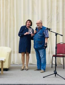 Фотокорреспондент, член Союза журналистов России Валентин Евкин вручил Елене диск с видеозаписью из цикла «Жизнь замечательных рязанцев», рассказывающей о ее творческом пути.
