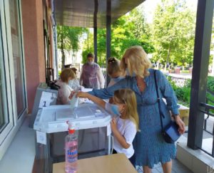 На участок Елена Шаповская приехала с внучками Ванессой и Симоной. По ее словам, голосование по поправкам в Конституцию РФ – это историческое событие, и ей хотелось, чтобы внучки были к этому причастны.