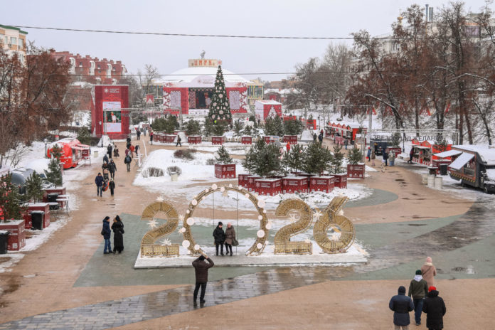 На Лыбедском бульваре все готово для того, чтобы встретить новый год. А 31 декабря с полудня здесь проходит фестиваль добрых пожеланий «Мир в ожидании чудес». Для детей работают аниматоры, открыты домики-киоски с сувенирами Рязанского Края и символикой фестиваля. Здесь же можно попробовать местные блюда.