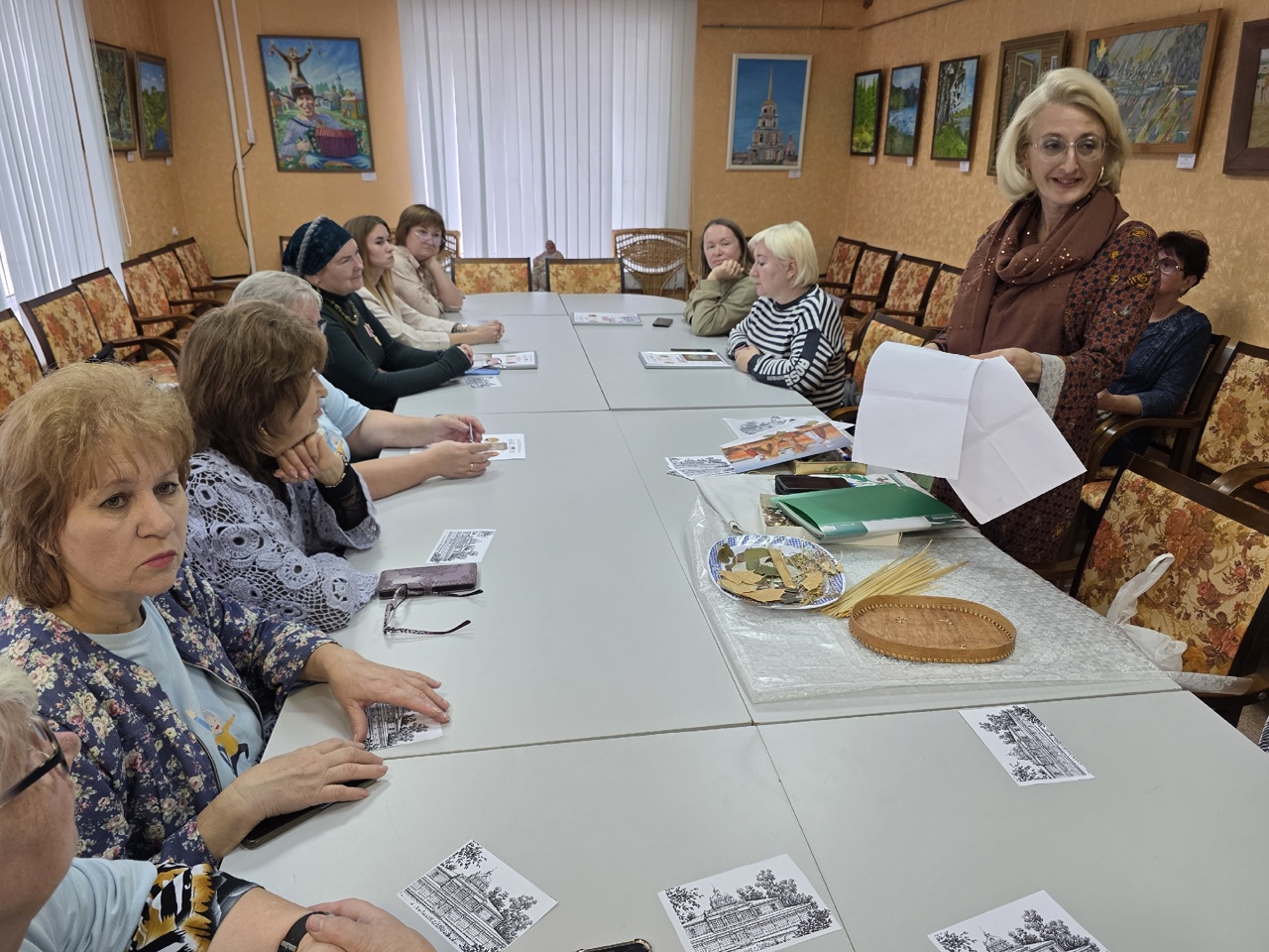 Светлана Дидух, изучив исторические и этнографические материалы региона, рассказала на мастер-классе о традициях народной культуры поры урожая, которая связана с последним снопом, а также об основах флористической живописи и работе с природными материалами. В заключение все желающие поучаствовали в создании эмблемы областного научно-методического центра народного творчества, сделали небольшие сувениры на память в технике флористической живописи.