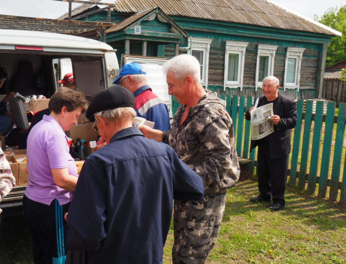 В село Городец Спасского района приехала автолавка. Предприниматель Сергей Абрамов раздает землякам свежий номер «Рязанских ведомостей». Быстро закупив продуты, жители углубились в чтение, не отходя от прилавка. Большой интерес у людей к печатным изданиям. Фото Димитрия Соколова