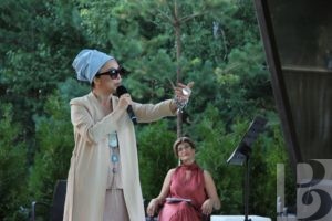 Продолжился фестиваль в загородном комплексе «Окская жемчужина». Многие приезжали заранее, чтобы успеть прогуляться и отдохнуть на пляже, поэтому к концерту публика уже была максимально настроена на отличный вечер. В амфитеатре главной площади курорта зрителей также рассадили на дистанции.