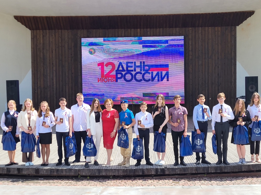 Глава администрации Рязани Елена Сорокина поздравила горожан с Днем России в Центральном парке культуры и отдыха. На сцене Зеленого театра в рамках муниципального этапа Всероссийской гражданско-патриотической акции «Мы – граждане России» Елена Борисовна вручила школьникам паспорта. В числе тех, кто удостоился почетного права стать гражданином страны в День России, – активисты РДШ, победители конкурсов и спортивных соревнований, волонтеры, юнармейцы.
