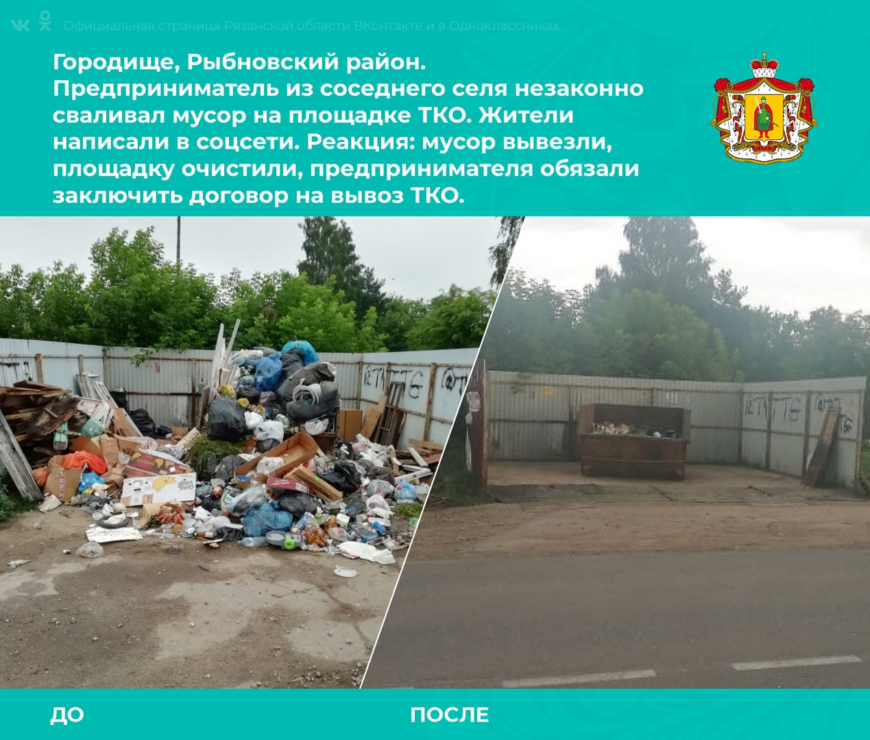В Сасове на сломанной детской площадке отремонтировали качели после сообщения местной жительницы в соцсетях. Жители Касимова пожаловались на скопление мусора и отсутствие баков на контейнерной площадке. Мусор оперативно убрали, а бак установили. Администрация Сапожка быстро отреагировала на сообщение о разрушенном участке моста. Оперативно были закуплены стройматериалы и проведен ремонт.