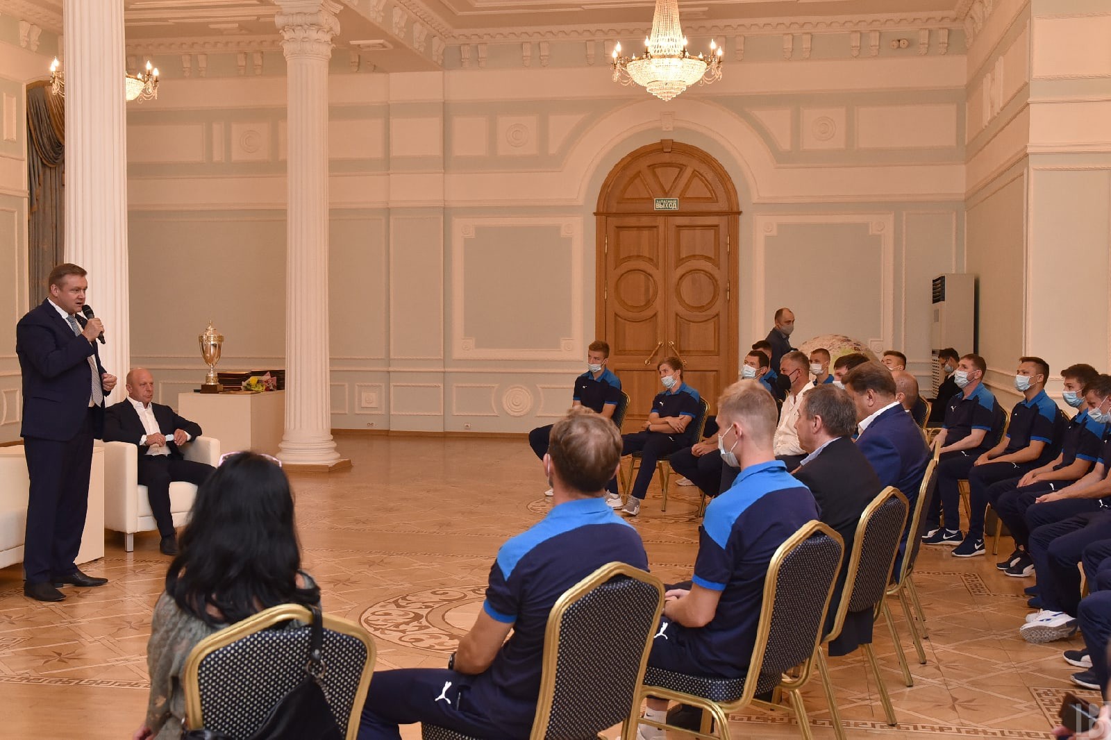 Перед церемонией награждения с руководством клуба и спортсменами пообщались вице-президент Профессиональной футбольной лиги Юрий Поляков, министр физической культуры и спорта Владислав Фролов и губернатор Николай Любимов.