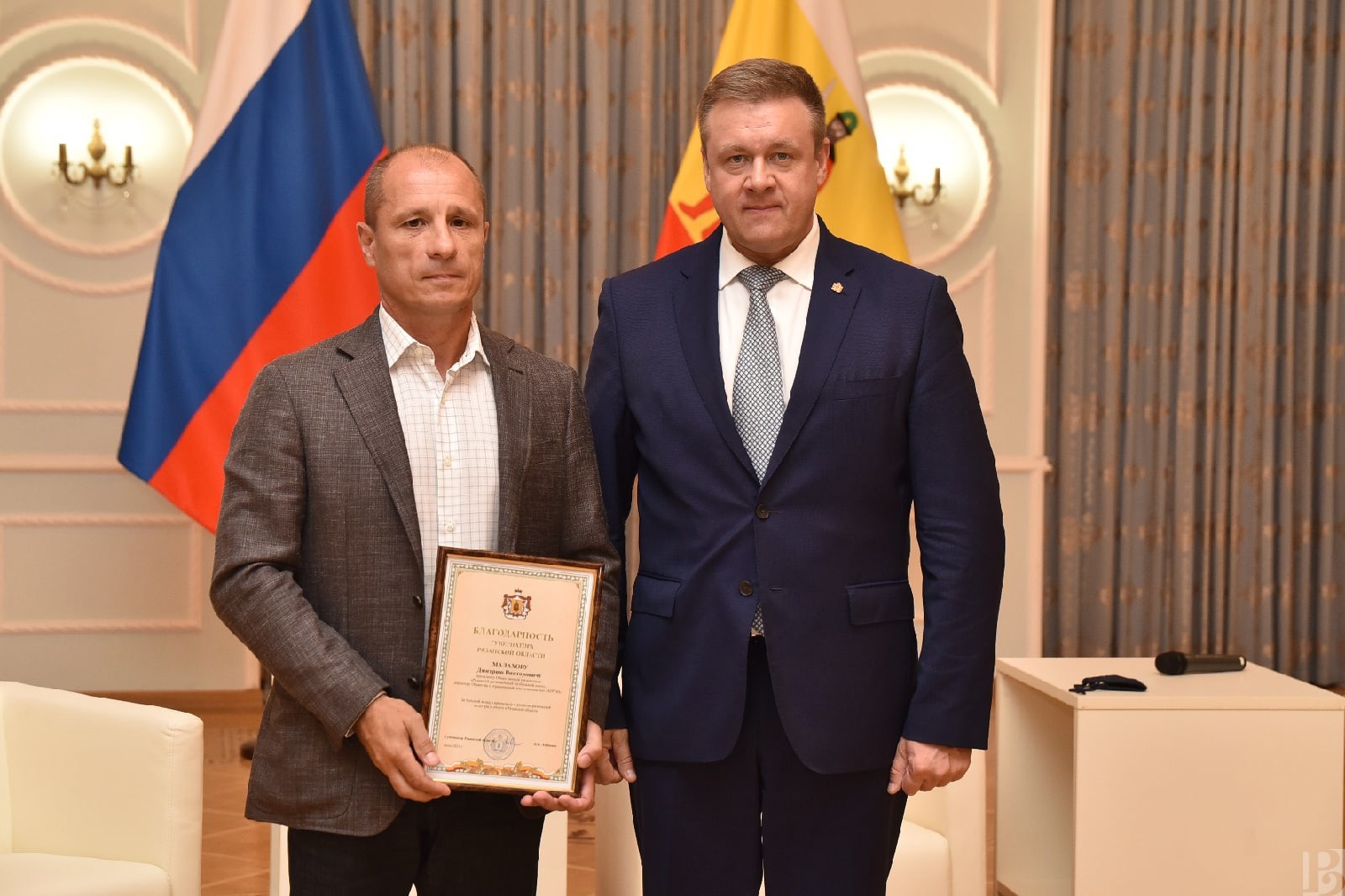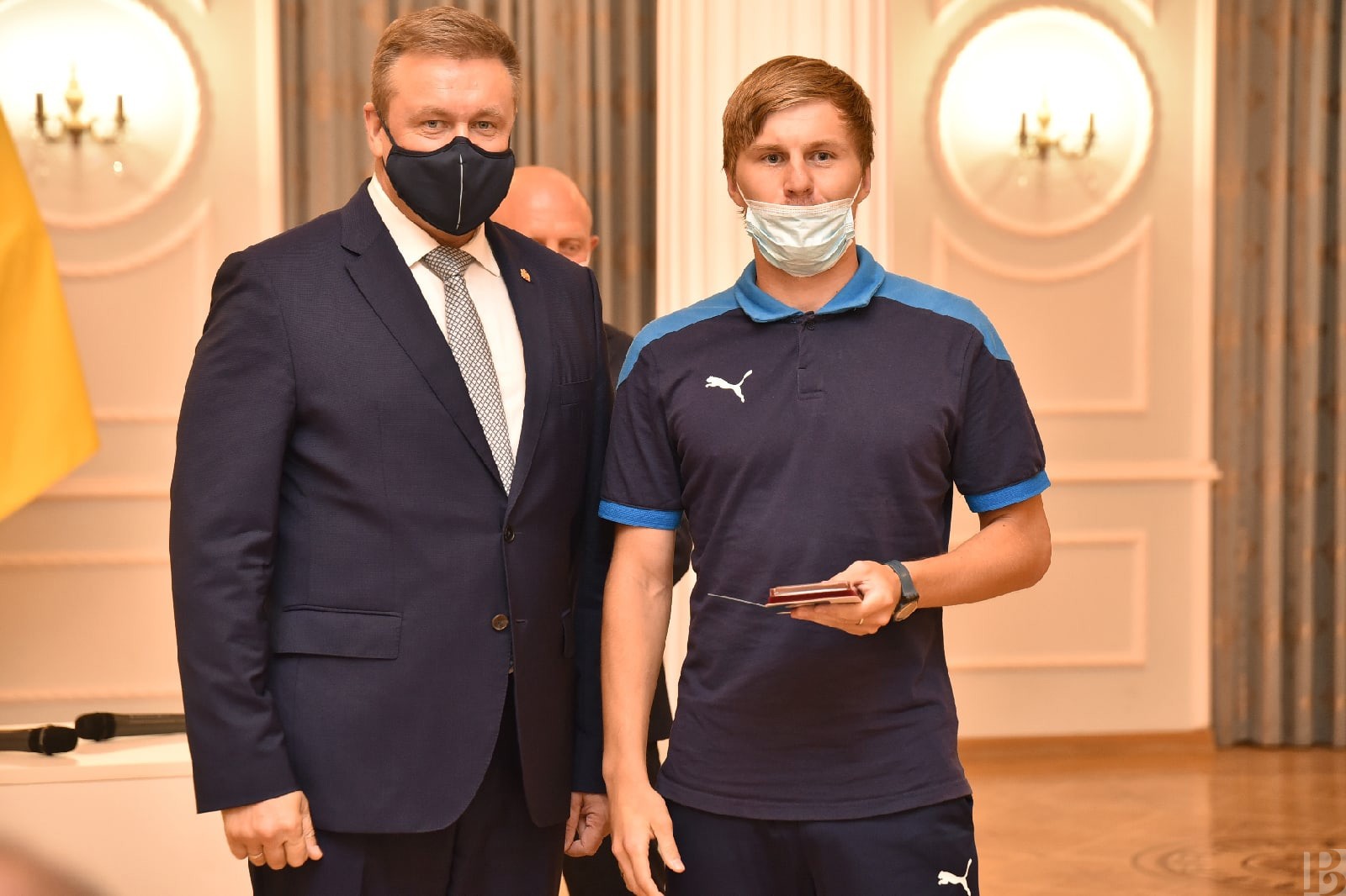После общения губернатор вручил футболистам, тренерам, руководству и работникам клуба региональные награды, а также медали и кубок за второе место