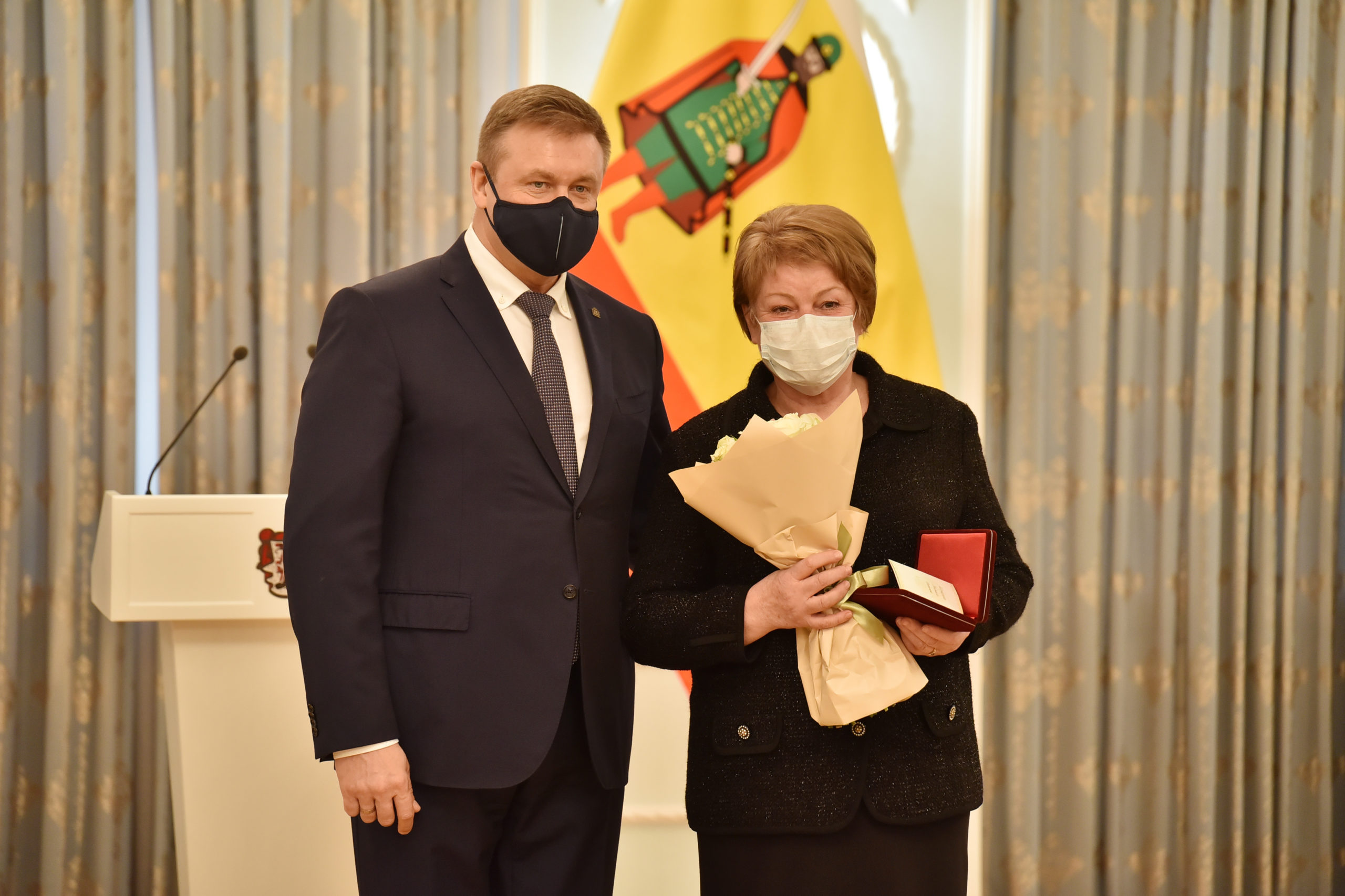 Николай Любимов вручил Орден Мужества медицинской сестре – анестезисту отделения анестезиологии и реанимации Областной клинической больницы имени Семашко Елене Федоровой. Учитель истории рязанской гимназии №2 Людмила Шмелева удостоилась почетного звания «Заслуженный учитель Российской Федерации».