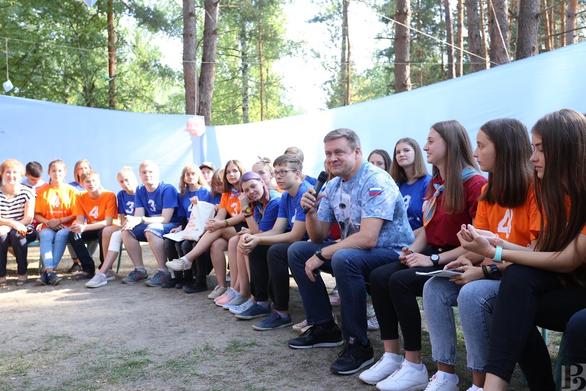О работе лагеря «Пламенный» рассказал его директор Александр Ширяев. В лагере отдыхают дети из всех муниципальных образований области. Подготовка активистов ведется по гражданской активности, личностному развитию, медийному и военно-патриотическому направлениям. В этом году лагерь разделен на две дружины и проходит на территории центров «Солнечный» и «Колос». В настоящее время в лагере отдыхают 540 школьников и активистов в возрасте от 12 до 15 лет.