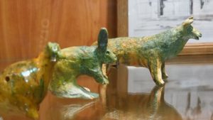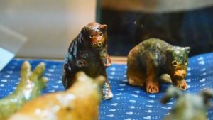 «Мы стали понемногу общаться с мастером, – рассказывает Ирина Александровна. – Просили его слепить игрушечку, но он считал это баловством, относился к свистулькам как к второстепенному делу, ведь он потомственный гончар. Два года мы приезжали и просили: «Василий Петрович, сделайте что-нибудь». А он махал рукой и говорил: «Я думал, вам уже не надо». Но времена были тяжёлые, девяностые годы… Я подошла к столу, положила денежку и отошла. Сказала: «Василий Петрович, сколько получится сделать – будем рады». Приезжаем – он нам целый стол игрушек выстроил! Но делать он стал только с условием: «Я буду лепить, если вы будете сами обжигать». Горнов уже не было, русские печки поломаны. Мы забирали игрушки домой обжигать».