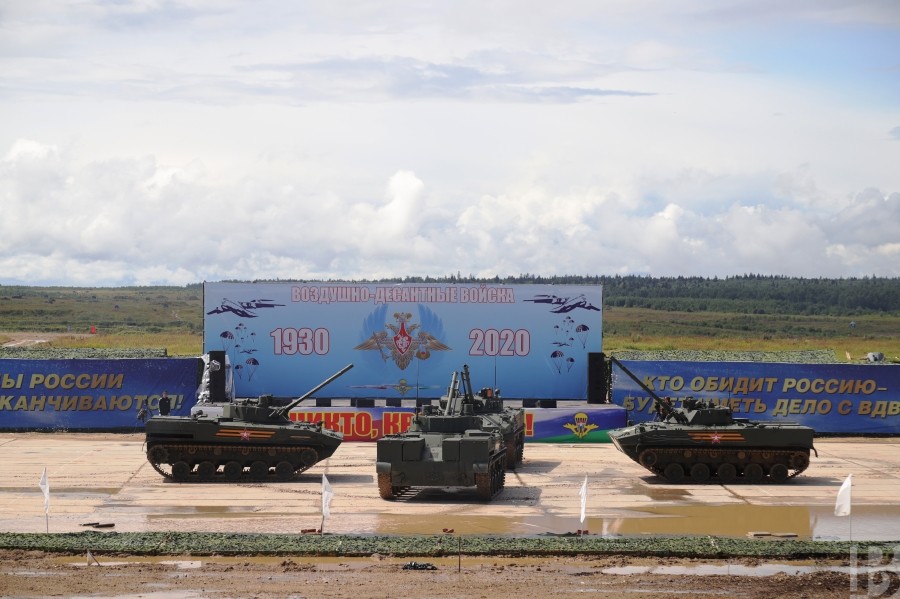 Праздник продолжается показом техники ВДВ. Мимо трибун проходят боевые машины десанта четырех поколений – от БМД-1 до БМД-4М, первые образцы которой поступили на вооружение 137-го парашютно-десантного гвардейского Рязанского ордена Красной Звезды полка. Вот идут, размешивая гусеницами алабинскую грязь, БТР-МДМ «Ракушка», самоходная противотанковая пушка «Спрут-СД», БТР-Д с противотанковым ракетным комплексом «Корнет-Д», самоходно-артилерийское орудие 2С9 «Нона-С», передвижной пункт разведки и управления артиллерией «Реостат», бронеавтомобили, багги, мотовездеходы АМ-1 под управлением курсантов РГВВДКУ имени генерала армии В.Ф. Маргелова. Пролетают самолеты военно-транспортной авиации от АН-2 до мощного Ил-76, борт которого вмещает четыре БМД. На поле появляются всадники – это курсанты Рязанского воздушно-десантного училища. Зрители наблюдают выступление на лошадях вьючно-транспортного взвода. Девушки лихо скачут на лошадях, да еще и из автоматов на ходу палят. Десантники 137-го полка исполняют вальс на БМД-4М. Вес каждой из машин 14 тонн, длина 7 метров, а они так грациозно вращаются на площадке размером 30 на 36 метров, что вовсе и не кажутся такими тяжелыми.