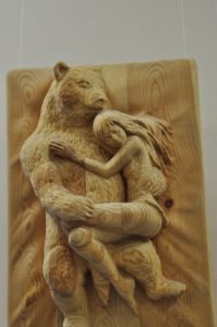 Его супруга Татьяна бисероплетением увлечена. Две дочери, Анна и Наталья, а еще племянница Дарья тоже талантом не обижены. Да и зять Владимир Гордеев блеснул мастерством, представив на выставку свои поделки. Одна композиция «Маша и медведь» – вы ее видите на снимке – чего стоит! Это тоже резьба по дереву, но станком с ЧПУ. Станок этот Владимир собрал сам, настроил и теперь вот работает в полную творческую силу.