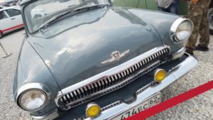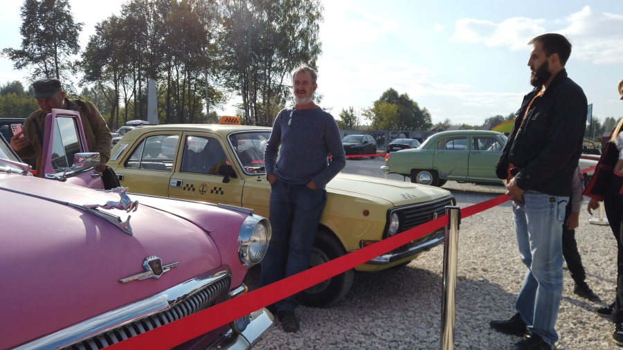 Это машины марки «Победа», «Москвич», «Волга 21» и «Волга 24». Своих советских коллег поддержала и иномарка – «Мерседес бенц 200». Все машины прибыли на место своим ходом, хотя возраст у них солидный. Одной из «Волг» 57 лет – она 1966 года выпуска.