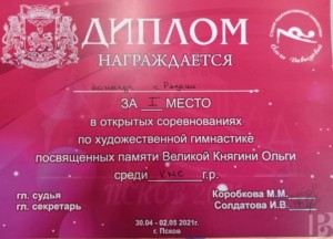 С 30 апреля по 2 мая в городе Псков в УСК «Олимп» проходили открытые соревнования по художественной гимнастике, посвященные памяти Великой Княгини Ольги.