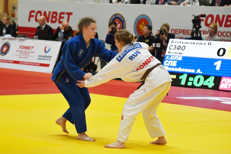 В первый день Fonbet первенства России на татами вышли спортсмены в весе до 100 кг и свыше 100 кг, а также дзюдоистки в категориях до 44 кг и до 48 кг. Предварительные поединки прошли в первой половине дня, а сразу после церемонии открытия соревнований состоялись финалы.