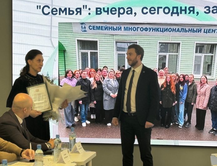 Андрей Кричинский вручил благодарность от министерства коллективу Комплексного центра социального обслуживания населения «Семья» директору Наталье Рюминой-Македоновой.
