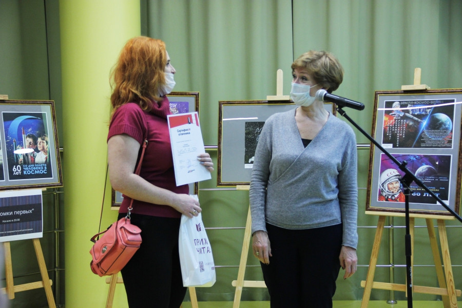 Для самых маленьких любителей космоса и сказок устроили представление театра теней «Как стать ближе к звездам» и песочное шоу от театра песка «БРИМ». Малыши вместе с родителями научились делать фигурки и работать с песком, чтобы показывать домашние спектакли. А в это время ребят постарше и взрослых книголюбов награждали на площадке «Потомки первых». Директор библиотеки имени Горького Наталья Гришина вручила грамоты и призы отличникам «Тотального диктанта», а также конкурса сочинений «Первый в космосе» и конкурса плакатов «Земля в иллюминаторе». Теперь эти работы можно увидеть в новом корпусе библиотеки: добрые пришельцы и ловкие астронавты, сказочные герои и даже кот-космонавт – вполне себе персонажи истории, которая рождается на наших глазах.