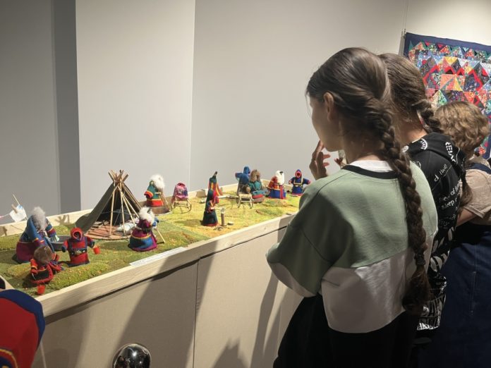 Мастера-кукольники заняли места в зале рядом со своими работами, чтобы лично рассказать посетителям о своем творчестве и ответить на вопросы. Людмила Лаптандер из Нарьян-Мара, представлявшая клуб «Мел Не (Мастерицы)», рассказывала об экспозиции: «Мы решили показать через кукол быт оленеводов в тундре. Наша экспозиция выполняет образовательную, ознакомительную и даже воспитательную функцию. Наша кукла выполнена из местных материалов: клювов утки и гуся, меха песца и оленя».
