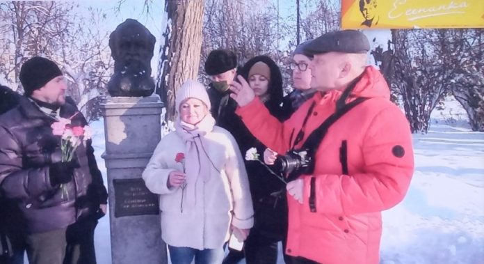 А утром пятницы сотрудники Рязанского музея путешественников вместе с краеведами и историками возложили цветы к бюсту П.П. Семенова-Тян-Шанского, установленному на Аллее путешественников в Верхнем городском парке.