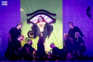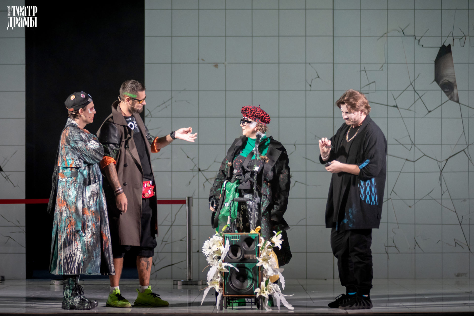 Действие этой повести А.С. Пушкина режиссер и актеры перенесли в эпоху кибер-панка. Современные игорные заведения, танцы, музыка, свет, одежда и манера двигаться, прически персонажей… – всё отсылает нас в 1990-е и даже нулевые годы нашего столетия. Очень узнаваемые нравы, поведение охраны – буквально наш век. И… Пушкин. Текст его повести практически неизменен. Тем яснее зрителю смысл довольно заезженного выражения : «Пушкин – наше всё». Два столетия назад автор создал сюжет об азартной игре. Страсть, порок, ложь, обман и как закономерный итог – безумие. Этот круг вечен. Он никуда не делся и в 21-м веке. Блестящая игра актеров принята была рязанскими зрителями восторженно. Что, на мой взгляд, особенно важно: сценическое действие практически захватило зал. Стояла полнейшая тишина , а это сегодня, согласитесь, дорогого стоит.