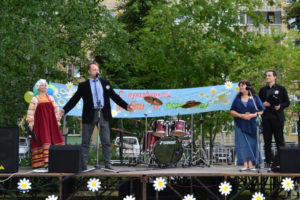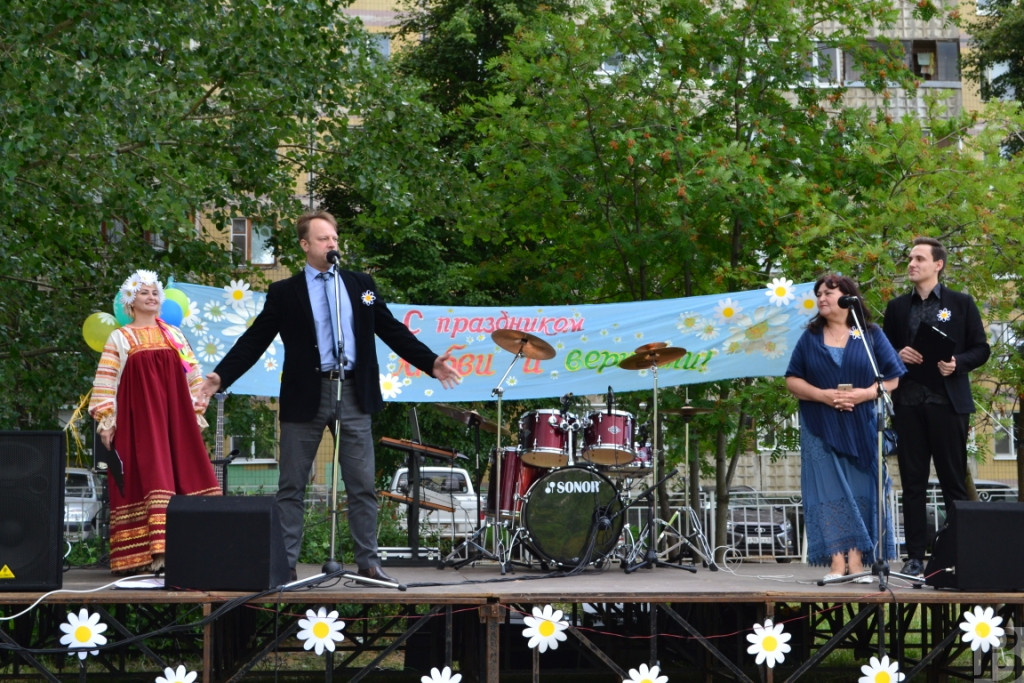 Торжество в сквере имени М. Д. Скобелева посвятили предстоящему Дню семьи, любви и верности. Организатором праздника выступил детско-юношеский центр народных промыслов «Рязанский оберег». Для юных гостей приготовили массу конкурсов, флешмоб и викторину по истории Рязани. Одним из самых трогательных стал конкурс на лучший рисунок, посвященный любви к Родине. Дети изображали дорогие им места мелками на асфальте и красками на мольбертах.