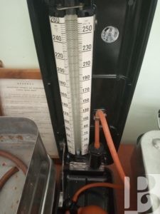Поднявшись по больничной лестнице, пройдя по коридору и открыв дверь комнаты-музея, мы как бы перемещаемся из современности в советские времена и начало 90-х годов прошлого века. Кто бы что ни говорил, а даже если бегло осмотреть музей, то становится понятно, какой прогресс произошел в медицине всего за несколько десятилетий. Среди экспонатов есть по-настоящему раритетные. Это, например, микроскоп, 1942 года выпуска, – им пользовались в лаборатории районной больницы долгое время. В те далекие годы ни о каких цифровых анализаторах, конечно же, не слышали, поэтому микроскоп был одним из основных приборов в арсенале лаборантов. Рядом тонометр (аппарат для измерения артериального давления) образца 60–70-х годов прошлого века. Принцип его работы в целом не изменился, а вот внешний вид и устройство стали несколько иными. Ртутный ретро-тонометр помещается в специальную пластмассовую коробочку, на внутренней части которой закреплено нечто, напоминающее современный уличный или комнатный термометр. На самом деле это и есть те самые миллиметры ртутного столба, в которых измеряется артериальное давление. Говорят, что именно такой прибор давал максимально точные значения.