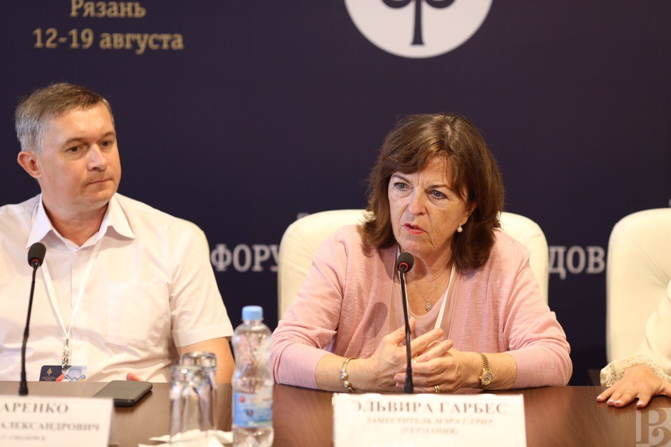 В общении с журналистами принимали участие и.о. главы администрации Рязани Сергей Карабасов, мэр Спарты (Греция) Валиотис Евангелос, заместитель мэра города Трира (Германия) Эльвира Гарбес, глава Смоленска Владимир Соваренко, глава Калуги Дмитрий Разумовский и министр культуры и туризма Рязанской области Виталий Попов.