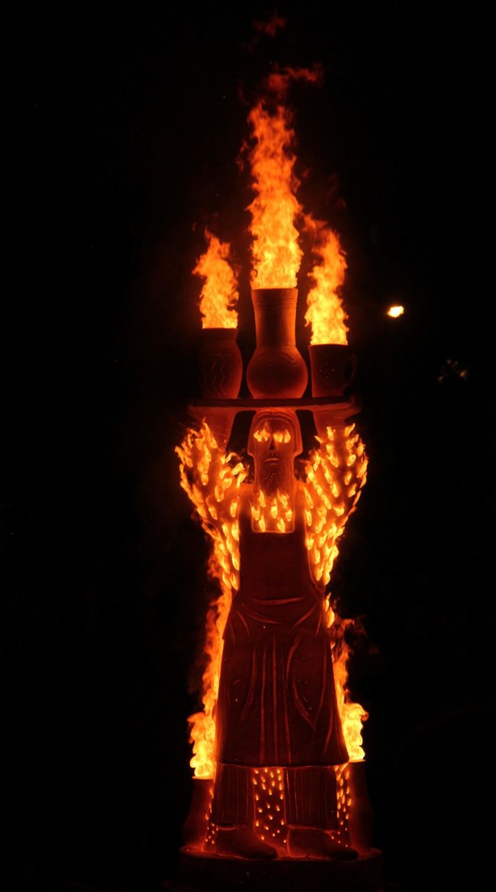 Кульминацией праздника стало шоу огненных скульптур. Их создавали три команды профессиональных керамистов из Рязани и Скопинского района. Зрителям по очереди показали фигуру гончара, богини-берегини и сказочного льва. Каждая скульптура прошла открытый обжиг при температуре 1250 С. В дальнейшем все эти творения планируют передать одному из культурных центров Рязани.