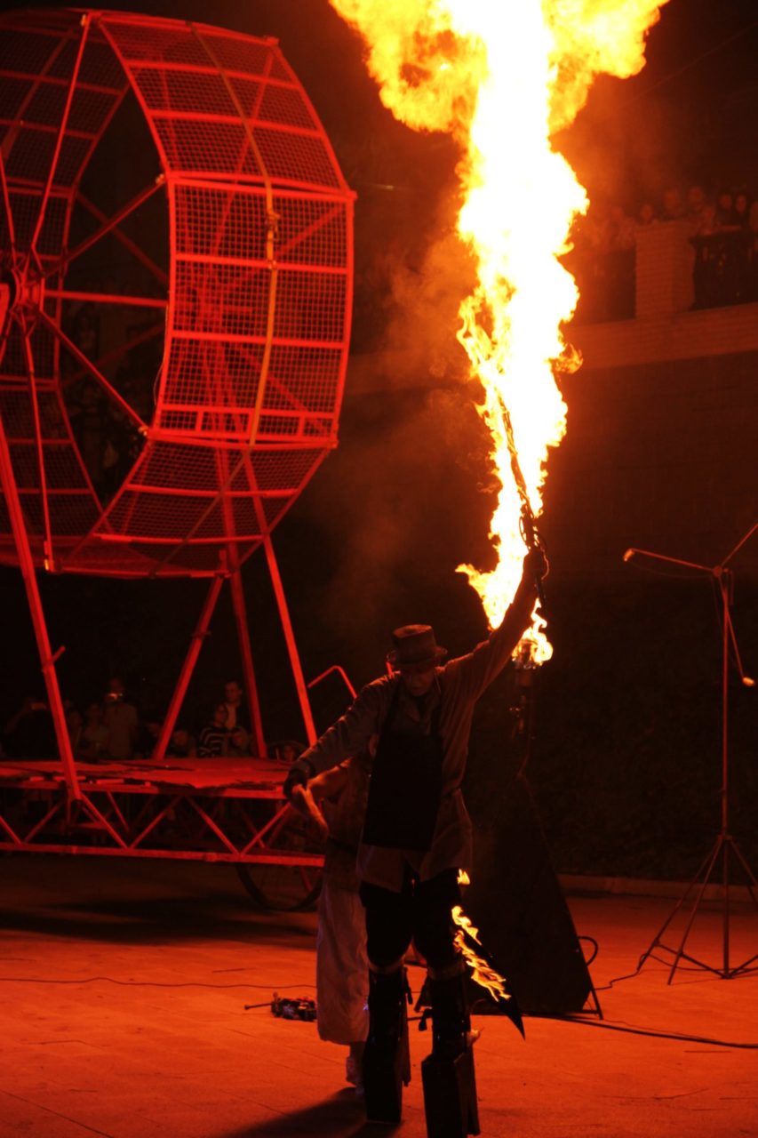 В течение дня кузнецы из разных регионов страны продолжали начатую ранее работу по созданию общей композиции. Параллельно шли мастер-классы для детей и взрослых. А с 20.30 столичный «Театр Экс» начал представление, посвященное огню и кузнечному делу. Артисты показали множество зрелищных трюков.