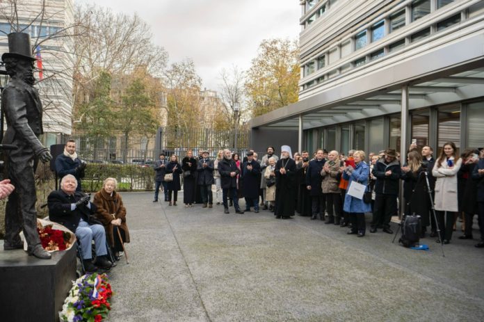 20 ноября во дворе учебного корпуса Российского духовно-культурного православного центра в Париже открыли памятник великому русскому поэту и писателю Александру Сергеевичу Пушкину. С приветственным словом к собравшимся обратился Чрезвычайный и Полномочный Посол Российской Федерации А.Ю. Мешков.