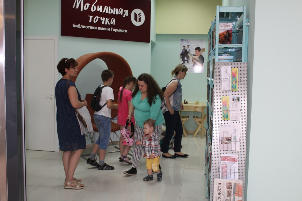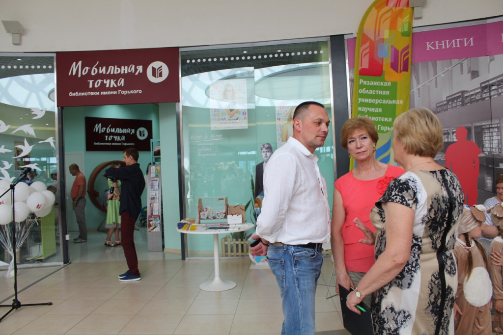Прогуливаясь по торговому центру, в минувшие выходные можно было зайти в гости в Горьковку, чтобы получить максимум библиотечных услуг, а заодно принять участие в бесплатных мастер-классах для детей, сыграть в шахматы, почитать свежую прессу. И таких гостей – родителей с детьми, молодых и пожилых рязанцев, активных читателей и тех, кто только приобщается к чтению, в этот день на мобильной точке библиотеки собралось немало. Посетители с детьми могли поиграть в настольные игры, решить головоломки, выбрать детские книги, а те, кто записался в библиотеку, получили еще и книгу в подарок. Теплую атмосферу общения обеспечили гостям библиотеки воспитанники танцевальной студии Art-Rise.