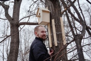 Скворечник делали всем миром. Доски пилить не пришлось. Дмитрий Радостин подготовил для скворечника в своей домашней мастерской «ДукДу» конструктор. В коробке принес деревянные заготовки и саморезы. Домик для скворцов нужно было только собрать. Каждый из ребят взял в руки отвертку и вкрутил по саморезу. Дмитрий учил ребят правильно орудовать инструментом, а Ирина рассказала о том, что лицевая доска изнутри должна быть шероховатой, чтобы птенчикам снизу легче было подниматься до крылечка.