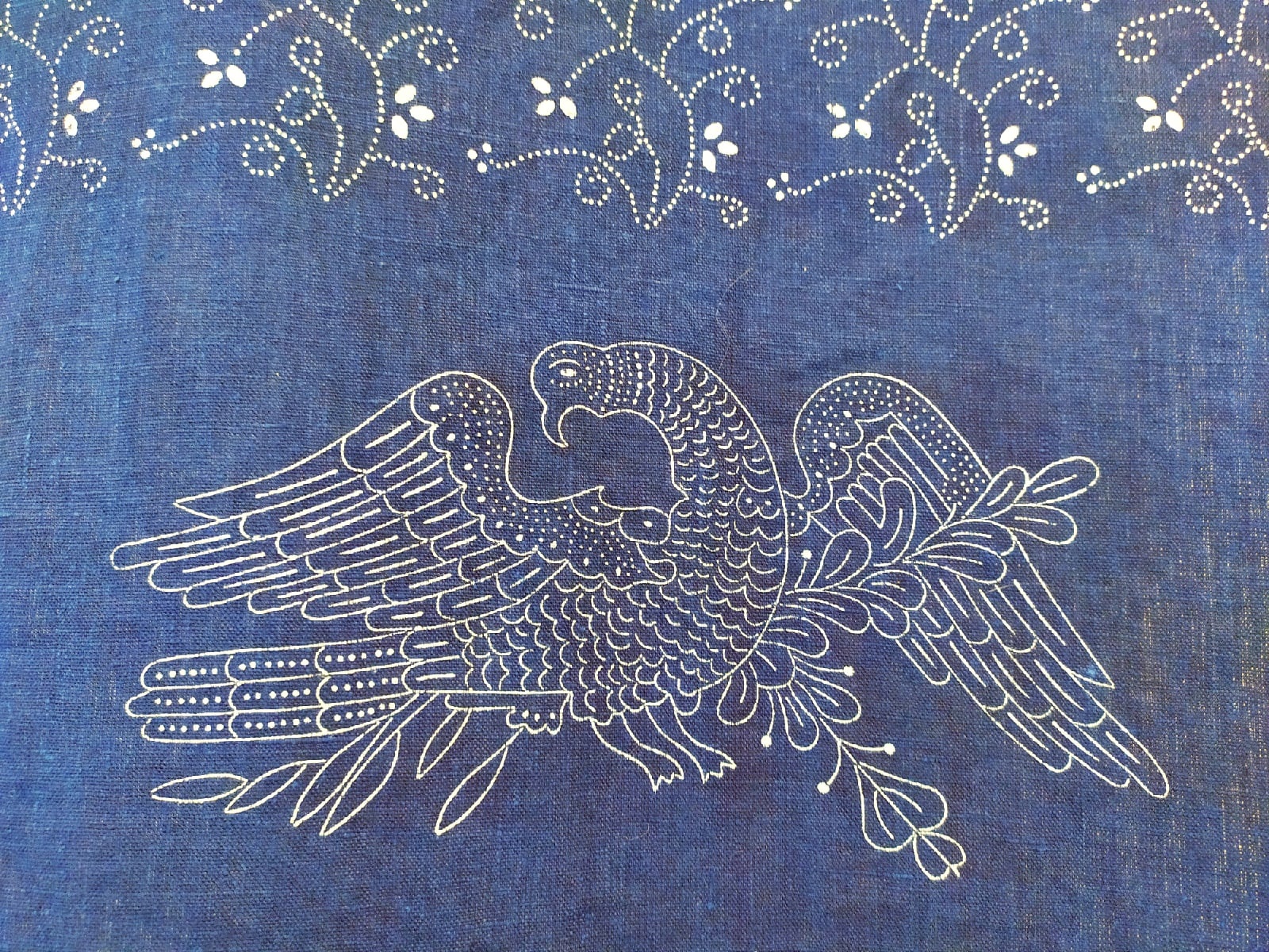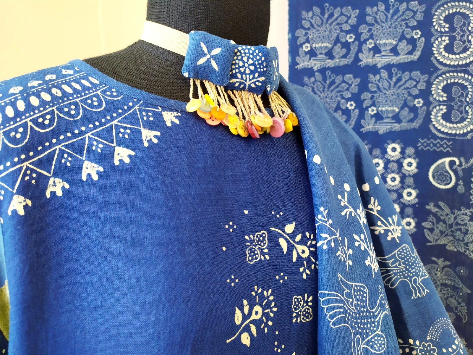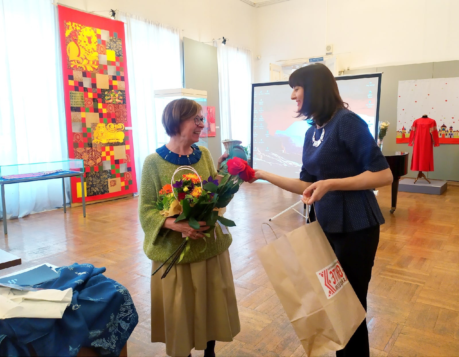 Одним из таких событий стала творческая встреча с дизайнером и художником Верой Голубевой. Ее текстиль, одежда и аксессуары уже не раз выставлялись в рязанских музеях. Художница работает в старинной технике кубовой набойки: на холсты специальными печатями с реагентами наносятся узоры, которые затем проявляются белым на окрашенной ткани.