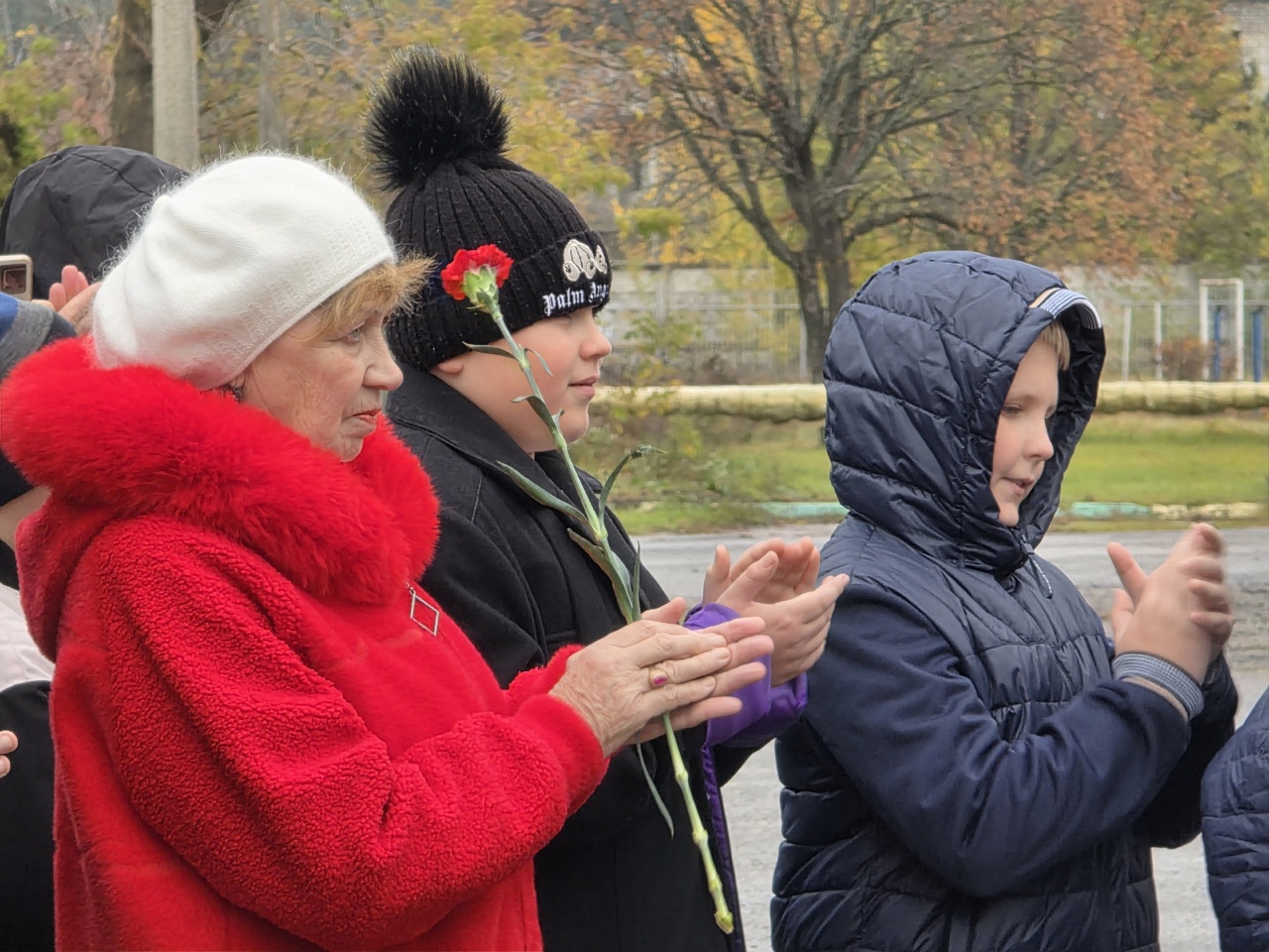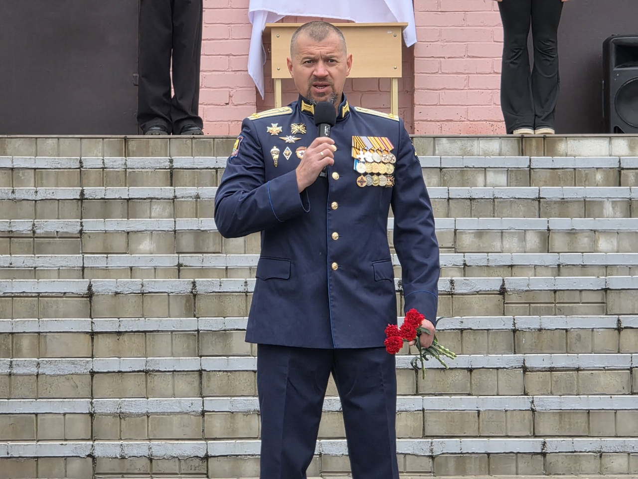 На церемонии открытия мемориальной доски школьникам об их знаменитом земляке рассказал подполковник, общественной деятель Юрий Валерьянович Люхин.