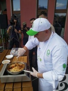 Через несколько минут на поварском подиуме узбекских поваров сменит шеф-повар из Пскова Сергей Евдокимов. Если хотите попробовать вкусняшку, приходите на веранду отеля “Старый город”.