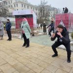 На свежем морозном воздухе участников зарядки быстро согрели физические упражнения, которые показал чемпион мира. Трансляция велась по всему Лыбедскому бульвару, и к зарядке смогли присоединиться люди, которые пришли на каток, а также те, кто просто прогуливался по аллеям.