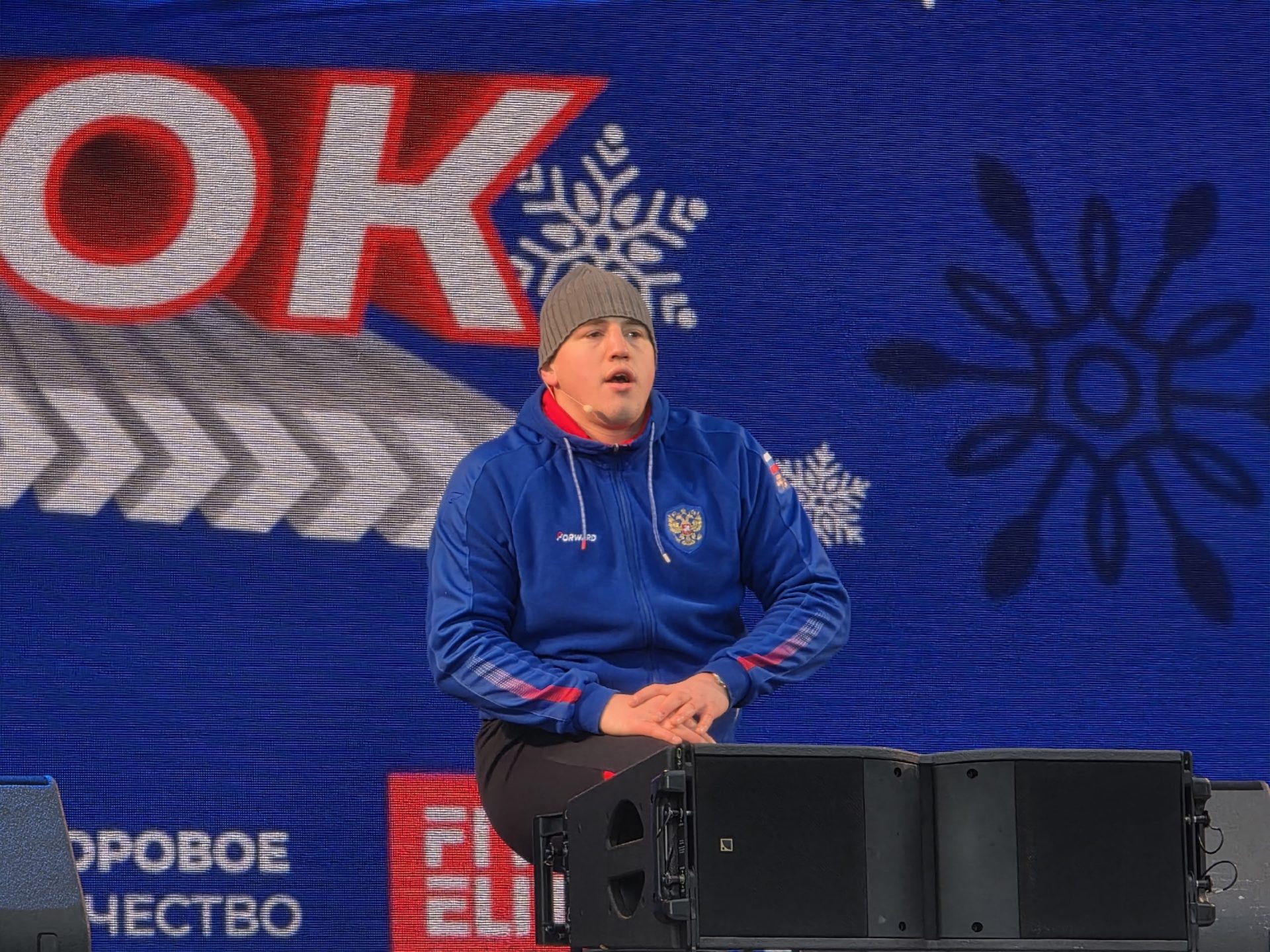 На свежем морозном воздухе участников зарядки быстро согрели физические упражнения, которые показал чемпион мира. Трансляция велась по всему Лыбедскому бульвару, и к зарядке смогли присоединиться люди, которые пришли на каток, а также те, кто просто прогуливался по аллеям.