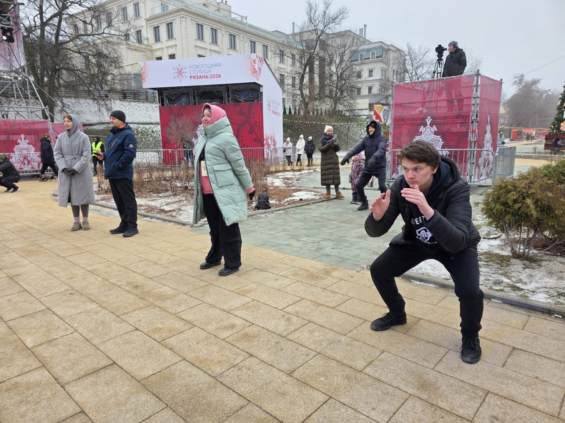 На площадке возле главной сцены «Новогодней столицы России» собрались рязанцы, неравнодушные к здоровому образу жизни, физической культуре и спорту. Сюда пришли молодёжь, взрослые мужчины, мамы с детьми.