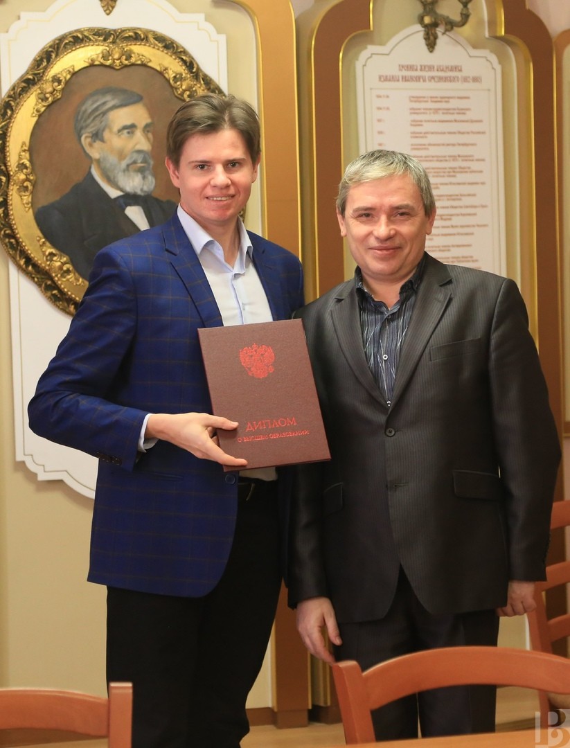Сегодня на факультете русской филологии и национальной культуры Рязанского госуниверситета имени (РГУ) С. А. Есенина торжественно вручили дипломы выпускникам отделения журналистики, успешно завершившим обучение по направлениям подготовки бакалавриата и магистратуры. Документы о высшем образовании из рук декана факультета, кандидата филологических наук Кирилла Алексеева получили 9 бакалавров и 10 магистров. Среди выпускников – те, чья профессиональная деятельность непосредственно связана с журналистикой. Это, например, молодой преподаватель кафедры журналистки РГУ Павел Квартников, которому был вручен диплом магистра с отличием. Павел ведет у будущих журналистов такие профильные предметы как «Основы медиапланирования» и «Система СМИ», занимается со студентами выпуском учебных газет. По его словам, самой интересной частью учебы была работа над магистерской диссертацией, которая представляет собой обзор освещения социальной проблематики в российских молодежных СМИ, включая студенческие. Кроме того, подготовка магистерской позволила молодому преподавателю обобщить опыт, полученный им ранее в рамках реализации проектов медийной направленности.