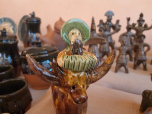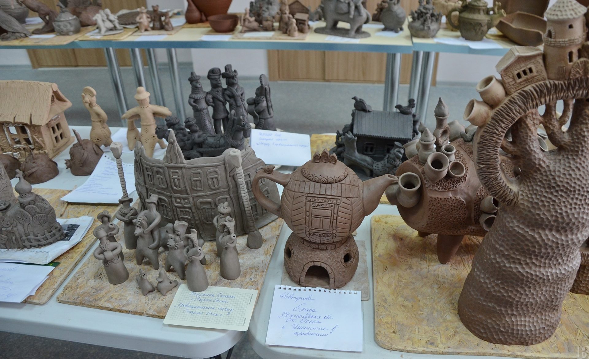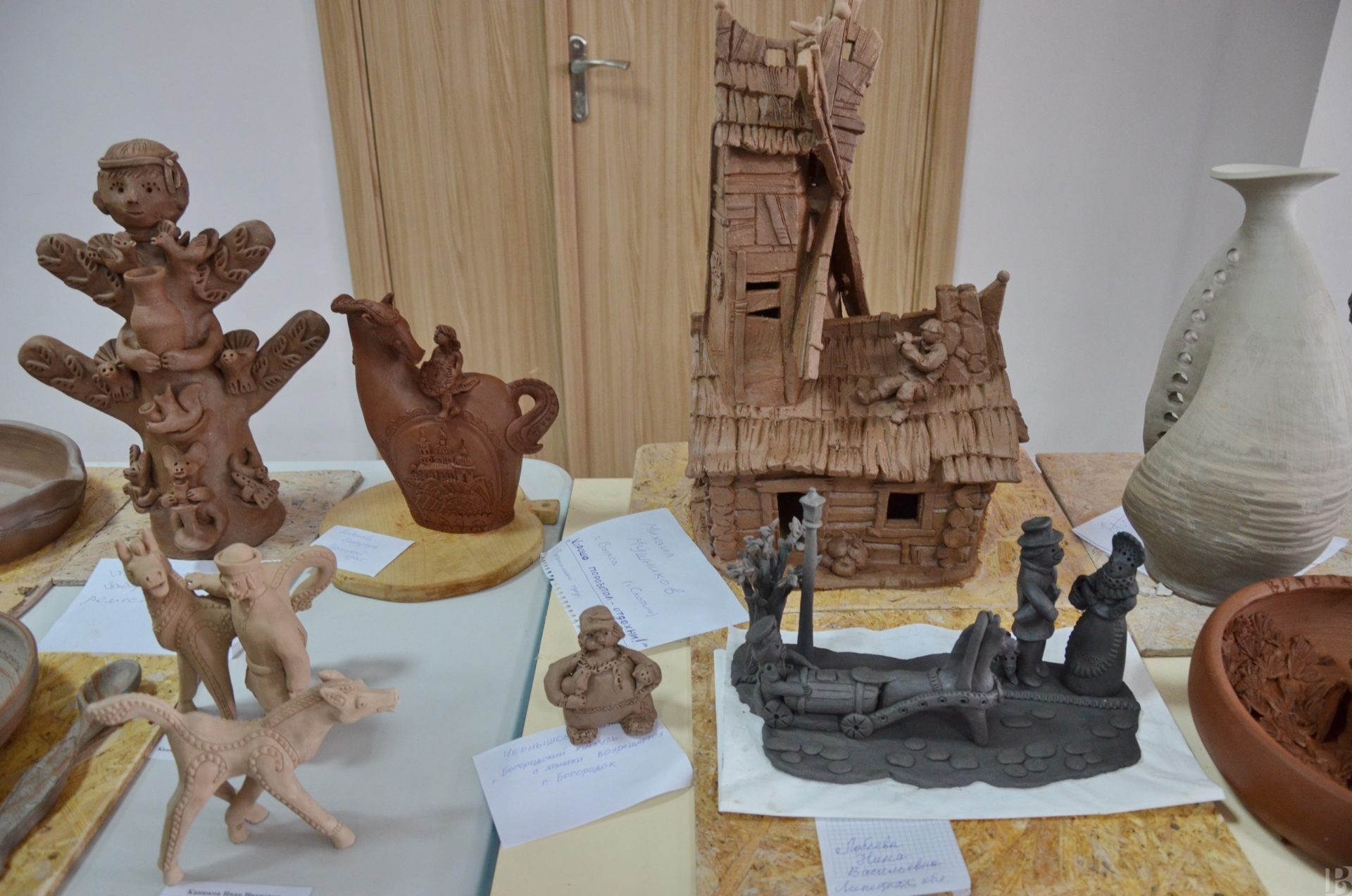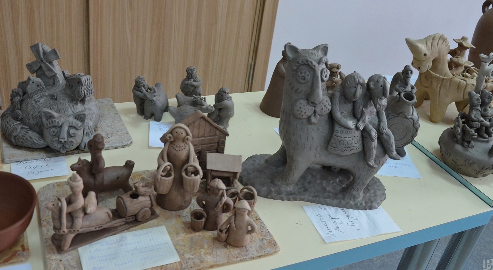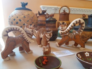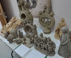 В Скопинском краеведческом музее представили свои творения художники Валентина Чепрасова, Эльвира Зинонова, Сергей Никулин и Антонина Нечаева. Они работают в технике гжельской майолики – росписи разноцветной глазурью. Композиции посвящены лубочным героям и провинциальной жизни.
