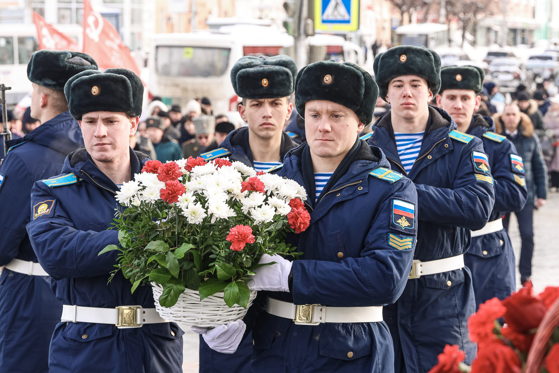 Память павших воинов почтили минутой молчания. В их честь был дан троекратный оружейный салют. Состоялось возложение цветов и гирлянд Воинской славы к монументам на пл. Победы и пл. имени генерала армии В.Ф. Маргелова. Курсанты Рязанского училища ВДВ прошли перед участниками церемоний торжественным маршем.