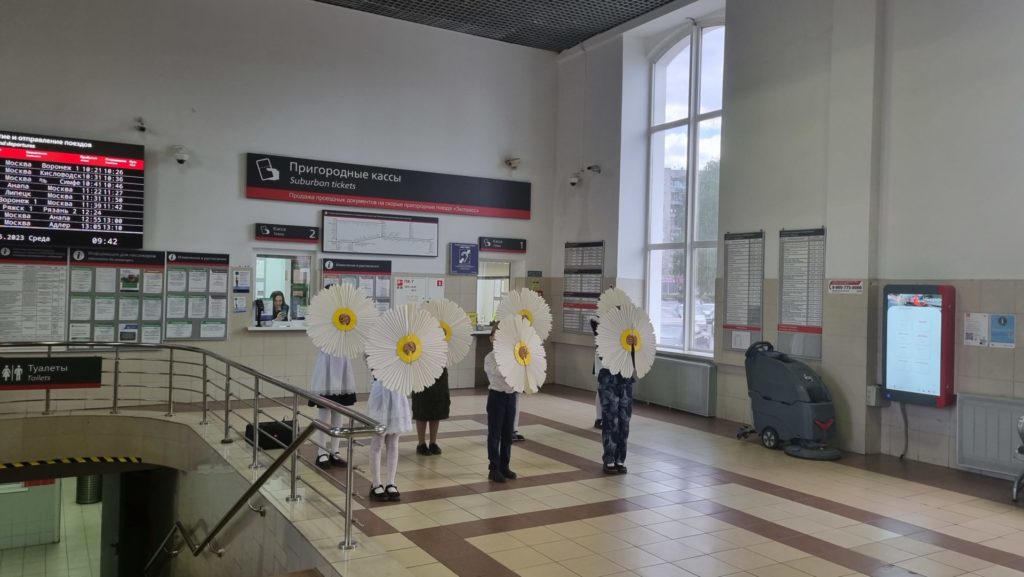 10 мая на железнодорожных вокзалах Рязань-1 и Рязань-2 состоялось выступление учащихся школы № 66, посвященное 78 годовщине Победы в Великой Отечественной войне.