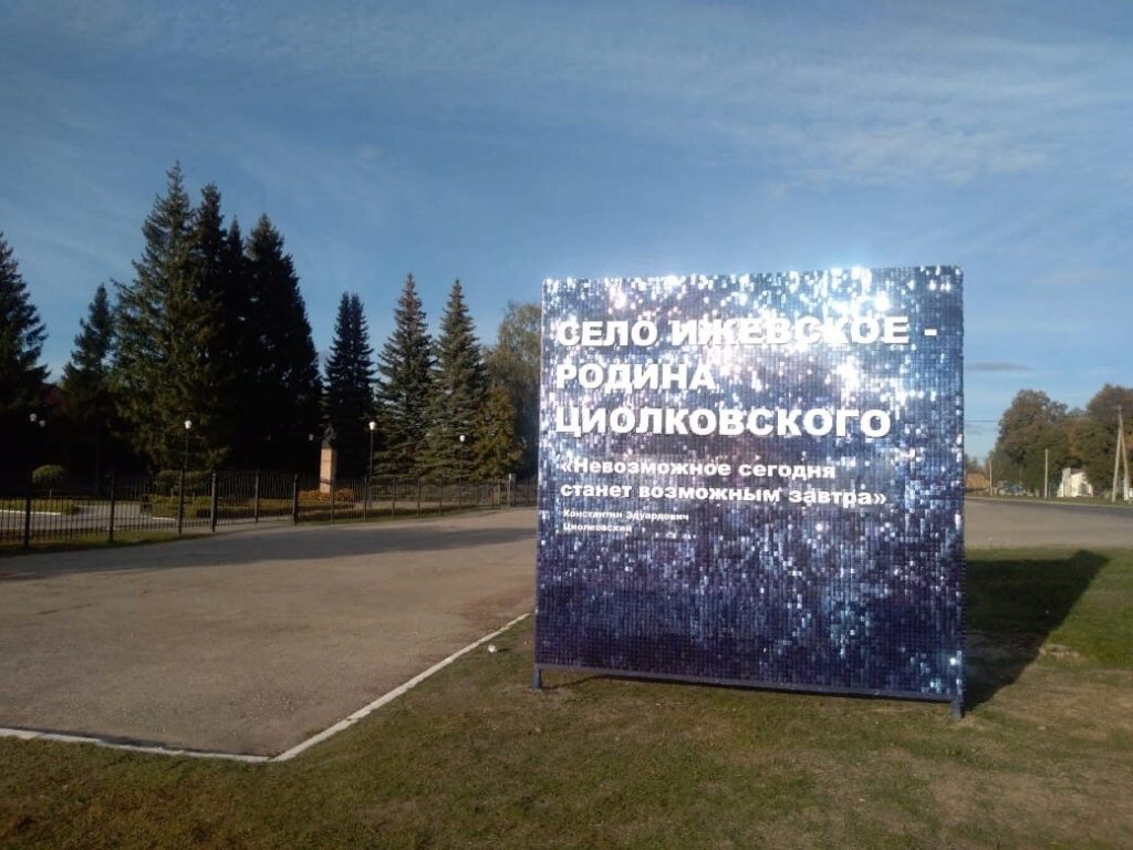 Интересный объект появился в Ижевском ко дню рождения К. Э. Циолковского. Он расположен на въезде в село, возле музея ученого, и представляет собой двусторонний информационный стенд, рассказывающий жителям и гостям о Циолковском, его работах, музее.
