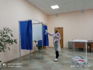 Об этом сообщают на официальной странице корпуса общественных наблюдателей в соцсети. В частности, при входе всем избирателям измеряют температуру, каждому участнику выборов выдают индивидуальные маску, перчатки и шариковую ручку, на участках соблюдается социальная дистанция. Кроме того, помещения для голосования и все поверхности обрабатываются антисептиками.